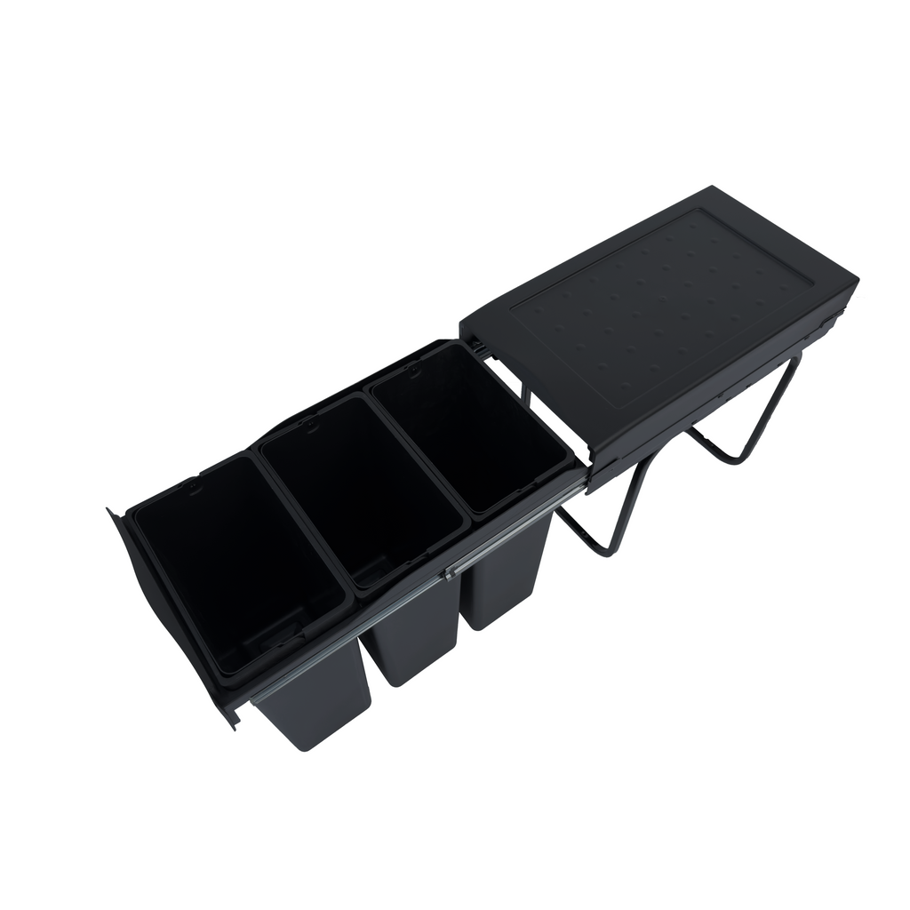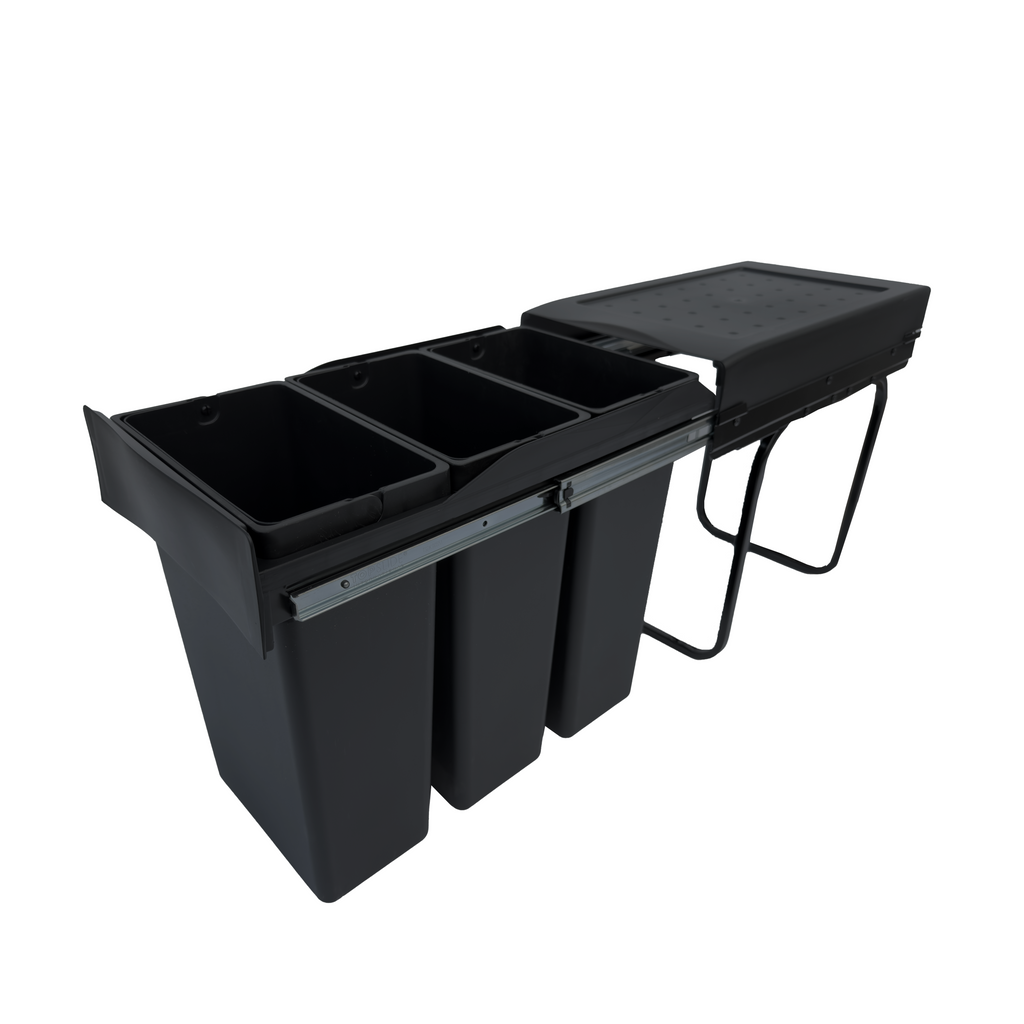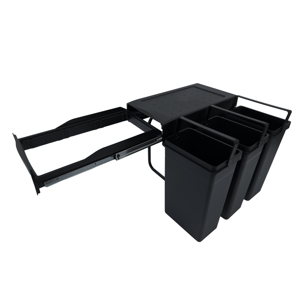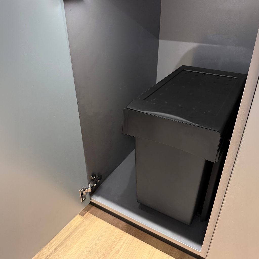 Affaldssystemet er produceret i Italien og fremstillet af sort genbrugsplast og stål. Udtrækket kører på kuglelejer i elforzinket stål, hvilket sikrer en stabil og glidende bevægelse hver gang. Et miljøvenligt valg uden at gå på kompromis med kvaliteten.