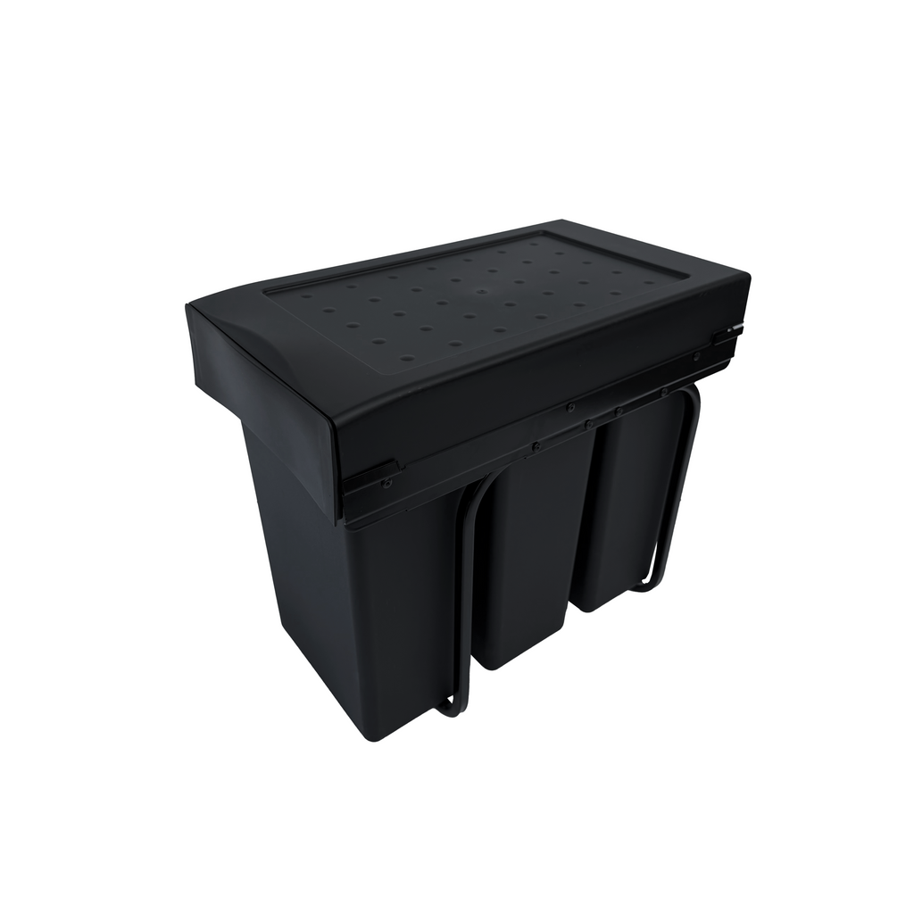 Copenhagen 3-30, sort • Affaldssystem i stål og plast på 3 x 10 liter med fuldudtræk