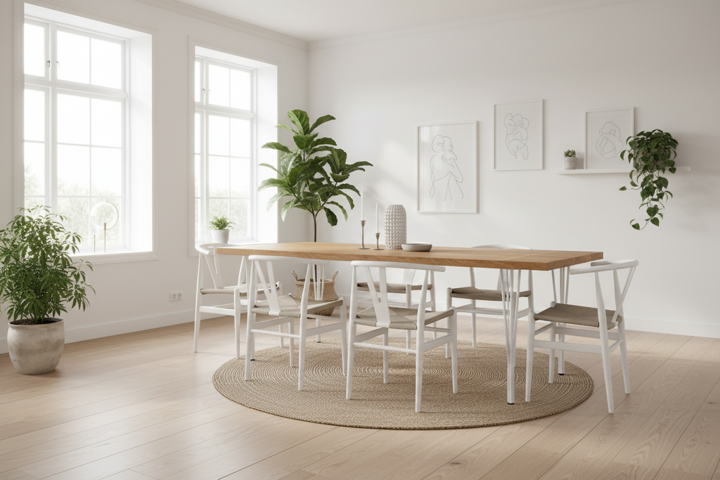 Eksklusivt 5-tråd bordben i mat hvid som kan justeres fra 71 til 73 cm i højden. Passer bl.a. til spiseborde og hvert ben kan nemt justeres 2 cm på foden/stilleskoen, så bordet står lige på et ujævnt gulv. Bordbenet er stærkt konstrueret med 5 kraftige rør så bordet står meget stabilt. Sælges kun som sæt. 1 sæt = 4 stk. bordben.