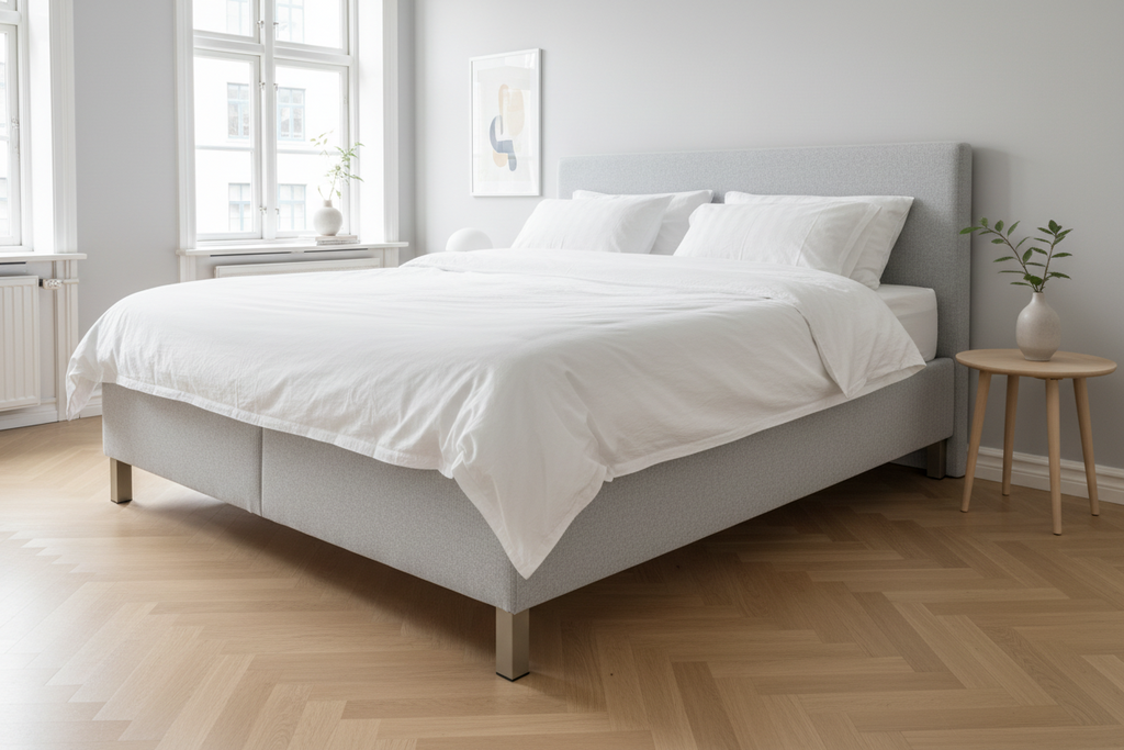 Sættet sælges som en komplet pakke á 4 stk. sengeben inklusive beslag – en enkel og holdbar løsning til opgradering af dine møbler.