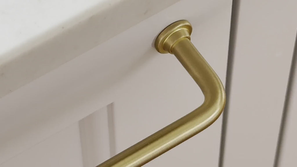 Vores elegante Frederiksberg greb i massiv messing passer godt til de fleste køkkener, badeværelser og opbevaringsløsninger. Det stringente, enkle og tidløse design, gør det nemt at implementere i din indretning og vil skabe et rent og eksklusivt udtryk.