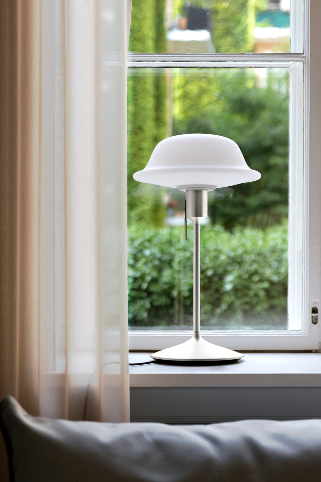 Butler bordlampen fra UMAGE er lavet af mundblæst opalglas, og dens formsprog, der kan tolkes på flere måder, er inspireret af den franske klassiker Le Petit Prince. Den mælkehvide lampeskærm spreder et blødt, varmt lys og tilfører samtidig et elegant og karakterfuldt præg til enhver indretning.