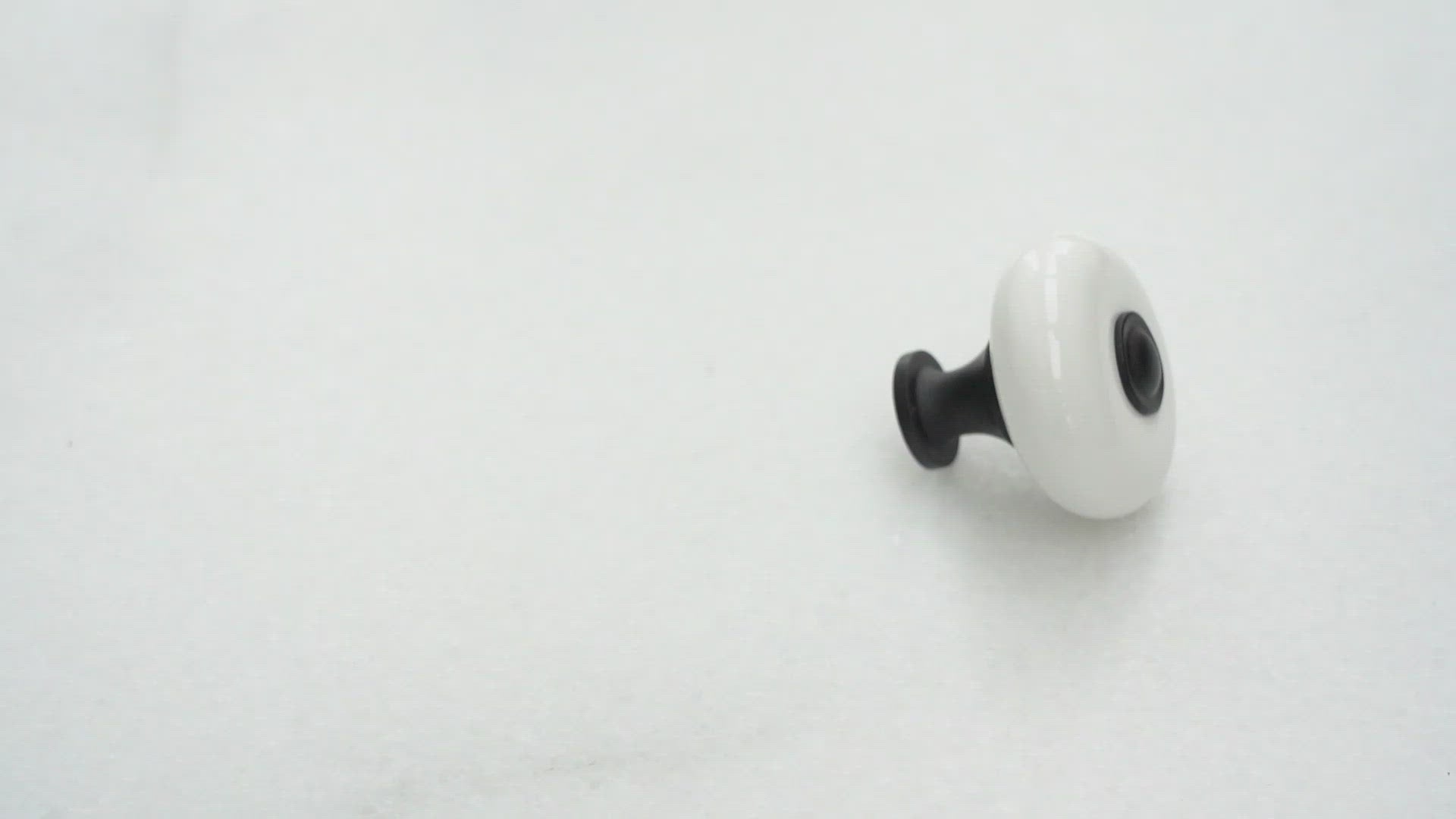 Knoppen er fremstillet i hvidt porcelæn med en fod i massiv messing. Den hvide Porcelæn og den mat sorte overflade er nem at vedligeholde.