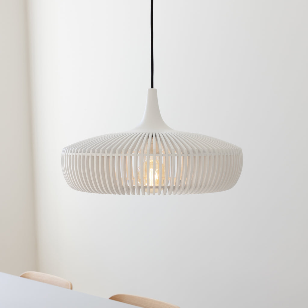 Clava Dine lampeskærmen fra UMAGE er storesøsteren til den populære Clava lampeskærm og viderefører det samme elegante design med retroinspirerede detaljer. Med sit eksklusive udtryk er lampen ideel over spisebordet eller sofabordet og skaber en hyggelig og stilfuld atmosfære.