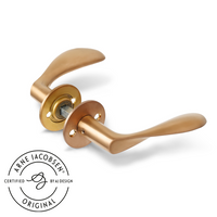 Arne Jacobsen er kendt for sine rene designs i slidstærke materialer og det gælder bestemt denne toiletbesætning, som sammen med dørhåndtaget er blevet et vaskeægte designikon og varemærke for dansk design. Toiletbesætningen produceres i dag af d line, hvor Arne Jacobsens navn er præget på siden af dørhåndtaget.