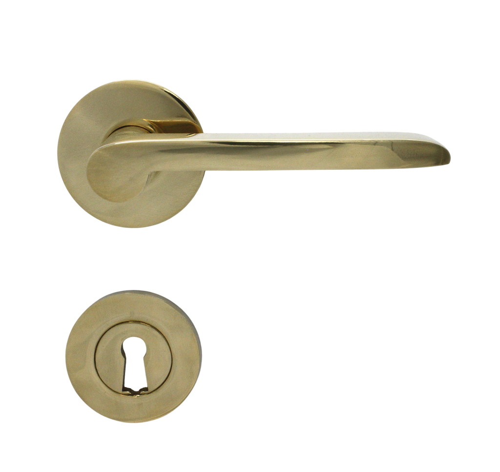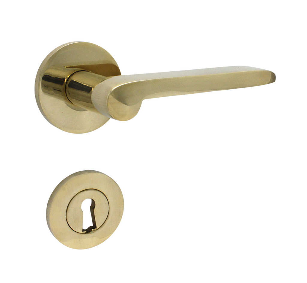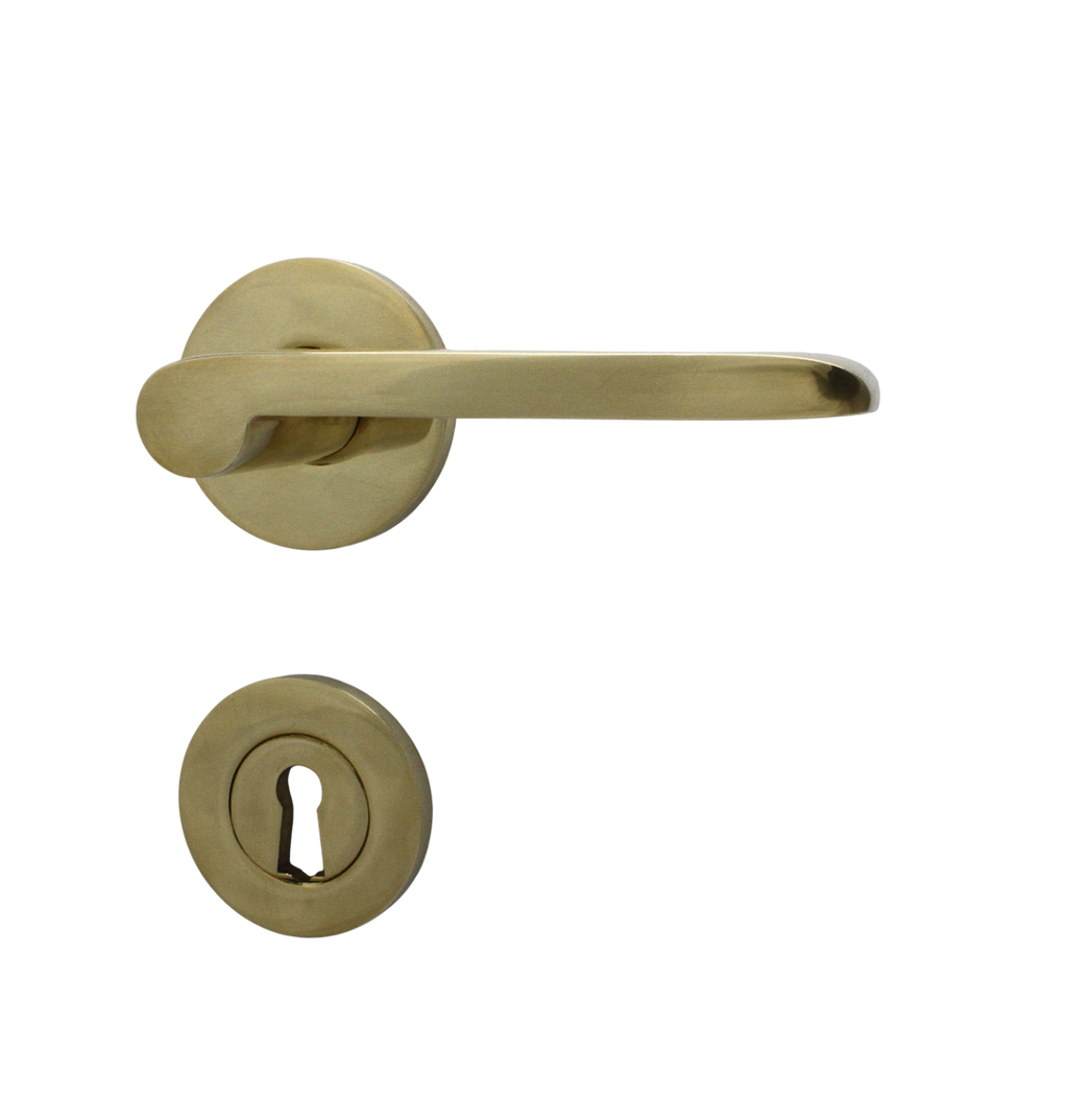 Dørgrebet er fremstillet i poleret massiv messing uden lak, hvilket betyder ar dørhåndtaget vil patinere smukt over tid.