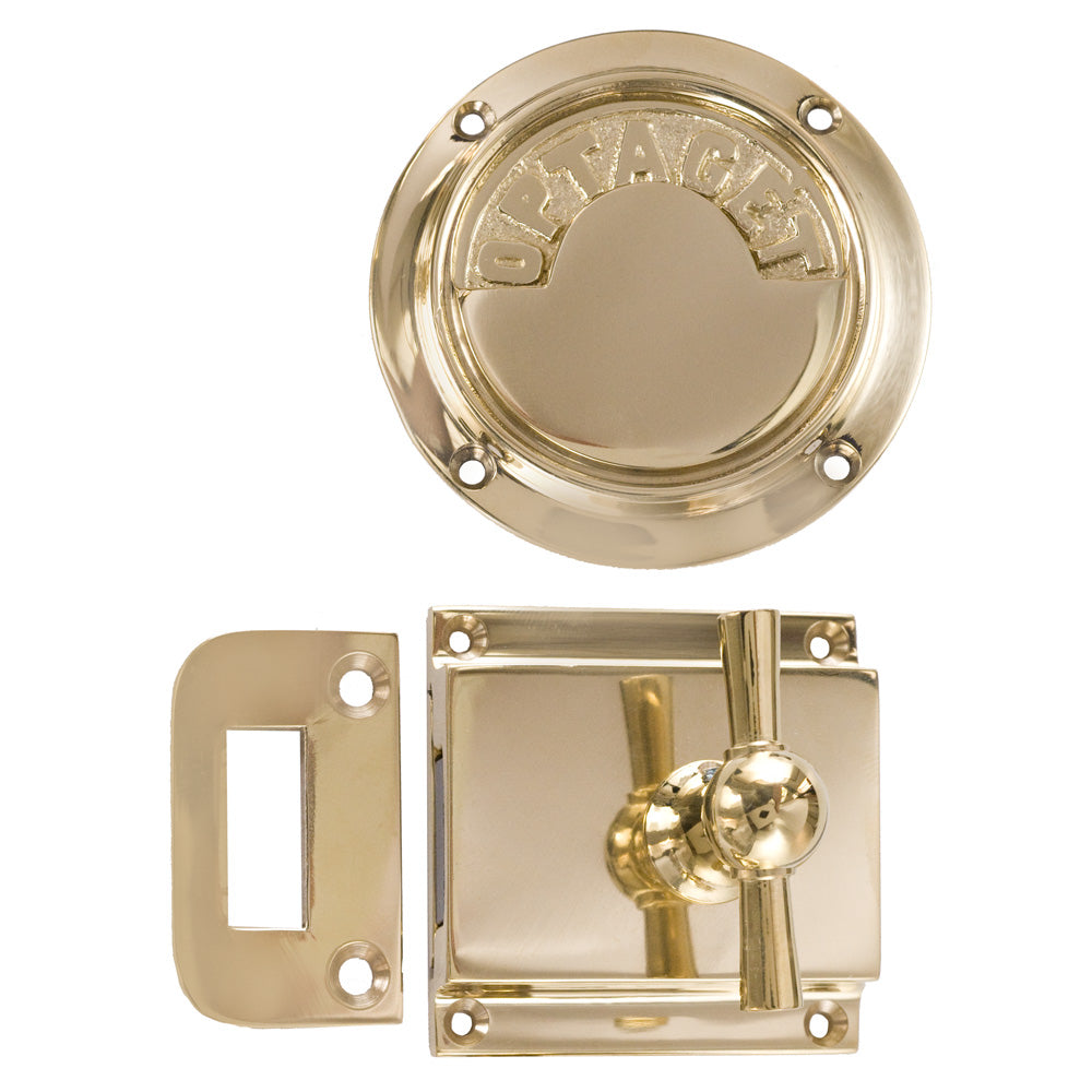 En enkel og funktionel toiletlås, der tydeligt markerer om rummet er optaget eller ledigt med ordene "OPTAGET" og "FRI". Låsen giver en diskret og brugervenlig løsning til badeværelses- og WC-døre og er nem at montere i både nye og eksisterende døre. Et praktisk valg uden at gå på kompromis med æstetikken.